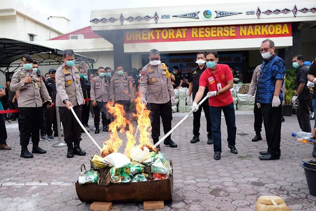 INILAHMEDAN - Medan : Sebanyak 53, 91 Kg shabu, 49,647 butir extasi dan 323.103 Gr ganja hasil dari barang bukti tindak pidana narkoba dimusnahkan, Jumat (03/04/20).