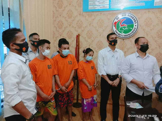 Dalam keterangan tertulisnya, Senin (23/11/20), tiga tersangka yang diamankan yakni S alias Unying (37) warga Dusun Sungai Dondong, Desa Bagan Bilah, Kecamatan Panai Tengah, Kabupaten Labuhanbatu (target operasi).